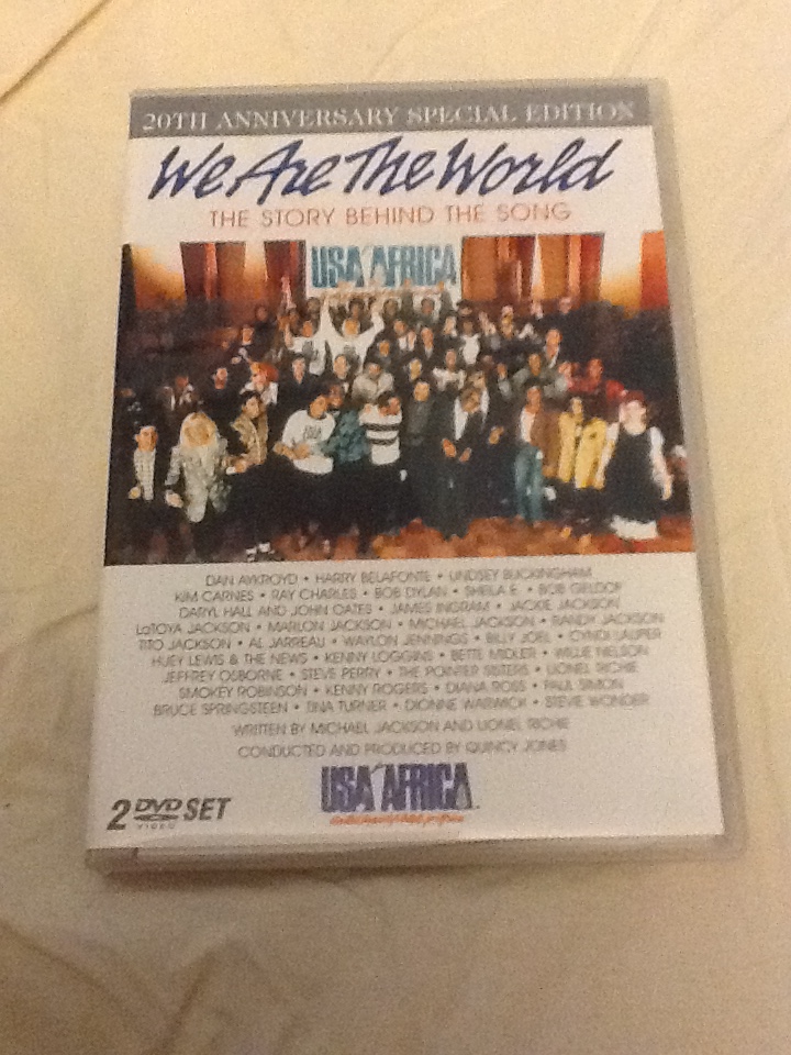 En el año 85 Lionel Richie (ese que cantaba "All night long" y otras muchas que seguro que te suenan si tienes más de treinta y tantos) y Michael Jackson (sniff) escribieron la canción que posteriormente grabaron con muchos otros artistas con el fin de recaudar fondos con fines humanitarios (concretamente el hambre en Etiopía). Por aquel entonces yo era una enana y estaba locamente enamorada de Michael Jackson (eso será en otro capítulo) o más bien de su forma de bailar y de cantar. El proyecto se llamó "USA FOR AFRICA". Cuando vi el vídeo se me desconyuntó la mandíbula... y cuando supe que los beneficios eran por una buena causa, rompí mi hucha (es un decir, una manirrota como yo nunca ha tenido ni hucha ni ahorros ni "ná") y me fui a Bambuco a comprar el disco. En Bambuco tenías la oportunidad de escuchar el disco en unas cabinas donde te enchufaban unos cascotes de esos grandes (y que se vuelven a llevar ahora, ¡¡lo que son las cosas!!) y te pinchaban el disco (discos de vinilo... que ahora creo que también están volviendo a ponerse de moda... ah, sí, yo tengo el de "Hellville de Luxe" de Bunbury porque traía alguna canción extra, jaja). Aquel vinilo de "USA FOR AFRICA" no necesitaba escucharlo porque sabía que lo quería. "Pa" mi "pa" siempre.... y no me cansé de escucharlo... tanto es así que hará unos años se reeditó en DVD y yo pues.... en fin....
